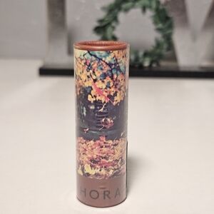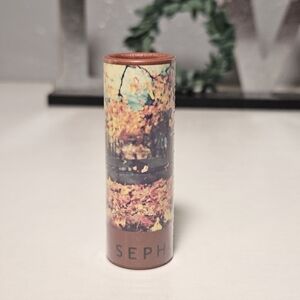 Sephora lip balm with an autumn leaves design. Features brown and multicolor accents.