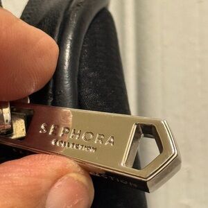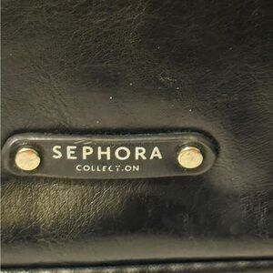 Elegant black leather pouch by Sephora. Ideal for storing beauty essentials. Two extra pouch for more items include it . In great conditions