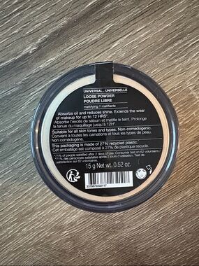 Translucent loose setting powder for a matte finish. Lightweight, finely milled texture. Suitable for all skin tones. Travel-friendly round compact.