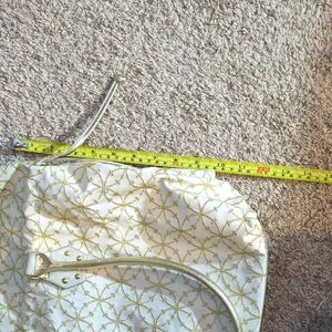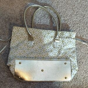 This Sephora shoulder bag features a sophisticated white and gold color palette, perfect for adding a touch of elegance to any outfit. Its structured design and double handles offer both style and practicality, making it an ideal choice for everyday use. The subtle tonal pattern adds a unique flair, ensuring this bag stands out in any setting.