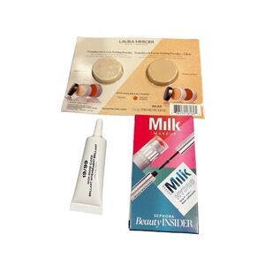 Bundle of 3 items new Lot of 3 Sephora Milk Make Up Beauty InsiderBrand, 19/99 High Shine Gloss lips, eyes, cheeks and Laura Mercier sample size 0.03 oz. translucent loose setting powder