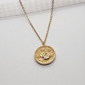 September Classy Floral Necklace Pendant with Crystals Gold Toned 19" Rose