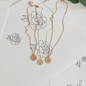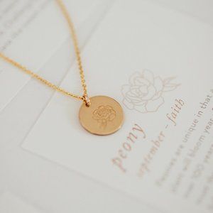 🌸NEW minimalist September birth month flower necklace! This dainty, bohemian peony charm necklace is perfect for layering. Elegant, simple & chic for any outfit or as a beautiful gift.