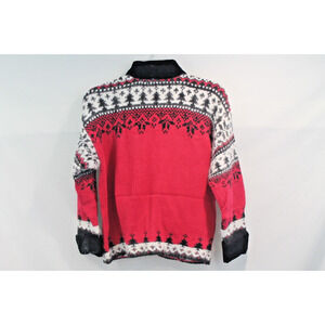 Sequel Holiday Cardigan Sweater sizeM Red Black Velour Trim Chinese Knot Buttons