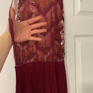 Beautiful sequenced (top/front) gown. Back is sheer netting. Lower half has a beautiful shimmer and side slit. Bought in Italy- made in Italy. Worn once to a wedding. Brand: Elizabetta Franchi