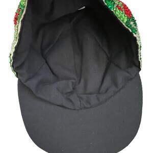 Unisex Sequin Red Green Christmas Tree With Stars Ornaments Baseball Cap Hat. Elastic band - one (free) size fits most black interior.