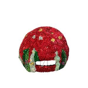 Sequin All over Christmas Tree Stars Ornaments Glam Bling Baseball Cap Hat