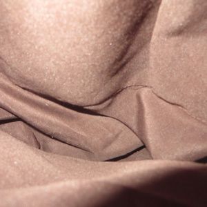 Black and Silver bag with slight wear that shows in the straps and on cloth interior. Extra strap for the side rings is missing. 3 pockets on the inside, one with a zipper. Both zippers work. Thank you for looking.