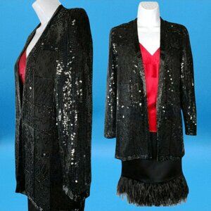 Sequin Beaded 100% Silk Evening Jacket Vintage Morgan Taylor Small Event Coat