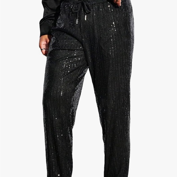 Elevate your style with these stunning sequin black pants. Perfect for a night out or special occasion.