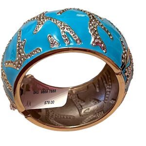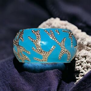 Sequin Blue Coral Rhinestone Wide Hinged Clamper Bangle NWT