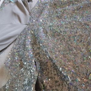 Beautiful piece and very trendy for the holiday occassions. I only wore one time for new years and i am ready to release it from my closet and hopefully someone can bring some life to it. I got so many compliments and its a very eyecatching piece. It is cutout and gives an illusion of a smaller waist and nice hips ... its sheer in the back.