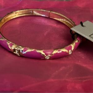 Bright Pink enamel, crystal, gold plate hinge bangle bracelet.