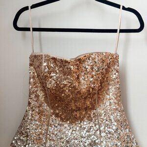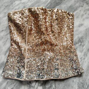 Beautiful sequin bustier from White House Black Market that was gently worn once.This White House Black Market bustier top boast Rose gold and champagne colored sequins that filter down to a silver shimmer at the bottom of our curve-conscious bustier, piped in satin charmeuse. A size 0 but fits like an XS.
