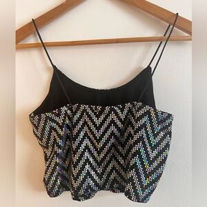 Sequin Chevron Black Crop Top