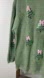 Cozy green sweater featuring sequin Christmas tree designs with pink bows. Perfect for festive occasions.