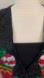 Festive sequin vest featuring red stockings and green holly leaves on a black background. Perfect for holiday celebrations. Self adjustable belt in the back.