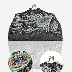 Sequin Clutch Evening Bag 1920s Flapper Beaded Peacock for Prom Party