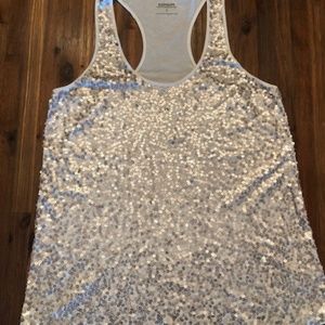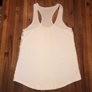 Cotton ivory tank with sequin front. Sequin colors are blush, ivory, champagne tones. Gently used