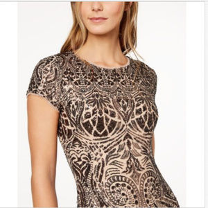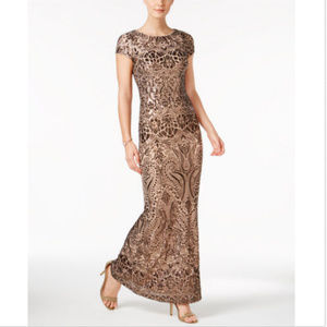 Beautiful NEW BETSY & ADAM Sequin Gown Bronze size 2 $310 Intricate sequined embellishments combines with a floor-sweeping skirt in this elegant gown from Alex Evenings. Approximate model measurements: height: 5'10"; bust: 32"; waist: 26"; hips: 37" See size chart Back zipper closure, Nylon/spandex; combination: polyester; lining: polyester Spot clean Made in USA