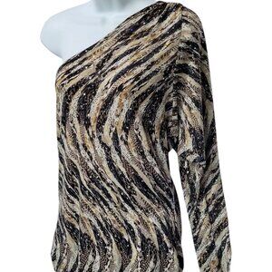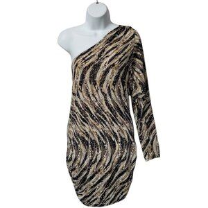 Sequin Embellished One Shoulder Mini Dress Juniors XL Ruched Sides Animal Print