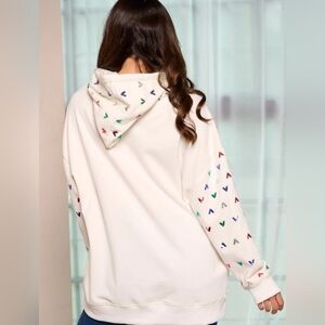 Women's Long Sleeve Front Pockets Hooded Sequins Detail Pullover Sweater
