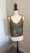 This is an Olive Green and gold sequin Cami from express. It hits just at the waist so I would say it’s midrise, almost crop. This is new without tags.