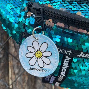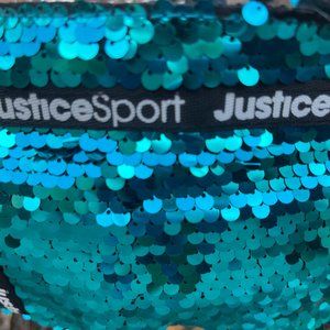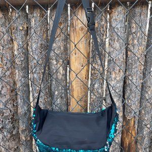 Ultra cute and hip turquoise/silver reversible sequin fanny pack for ladies/girls.
