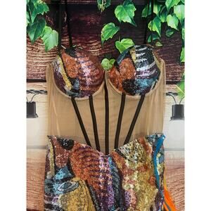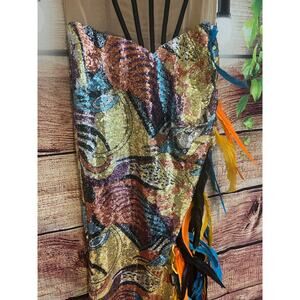 Gorgeous Banjul Sequin Feather Mesh Maxi Dress Mardi Gras Mermaid NYE Sexy Party Festival Vegas