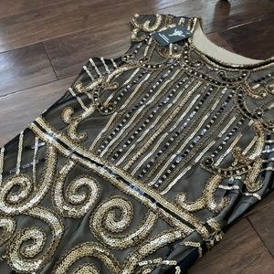 Sequin, Flapper type dress, black gold Size Small, NWT, Halloween costume