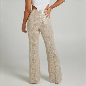 Sequin Flared Wide Leg Party Disco Retro Hipster Artsy Boho Night Sparkle Pants