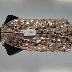 Shine bright with this stunning rose gold sequin halter top. Perfect for a night out or special occasion.