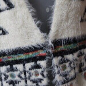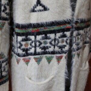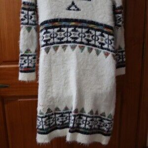 Sequin Hearts Aztec Print Fuzzy Long Line Blanket Cardigan Sweater Med
