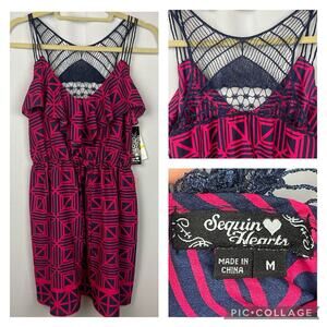 š Sequin Hearts Black Dress with Mesh Cap Sleeves and a Subtle Polka Dot Texture