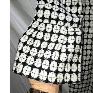 Sequin Hearts BlkWhite 3/4 straight sleeve with Bell cuff, Peter Pan Collar front button Tweed Blazer Jacket