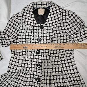 Sequin Hearts BlkWhite 3/4 Bell sleeve Peter Pan Collar front button Blazer 9