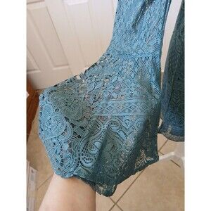 Sequin Hearts Boho Mini Dress Women’s Green Medium Lace Bell Sleeve Bohemian