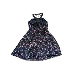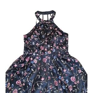 Sequin Hearts Dress 9 Junior's Black Embroidered Floral Fit & Flare Halter Neck