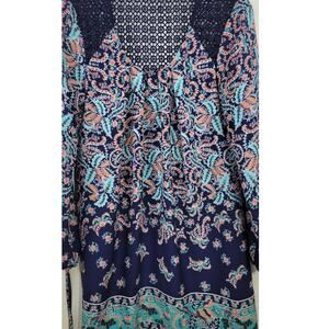 Sequin Hearts Dress Womens Small Midi Boho Cottage Core Peasant Whimsical Dress Sequin Hearts Dress Shades of Blue Midi Boho Long Sleeve Dress