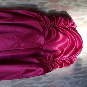 Sequin Hearts Fuschia Satin with a Pearl Beaded Neck and Ruched Hem Size S