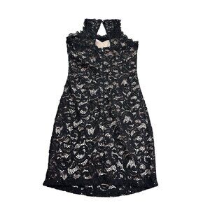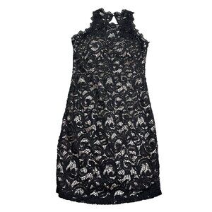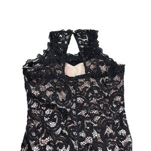 Sequin Hearts Juniors Black Lace Sleeveless Mini Dress Bodycon Size 3 Tan Lining