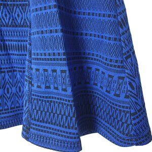 Elevate your wardrobe with this Sequin Hearts skater skirt, featuring a striking geometric pattern. Its vibrant blue and black design adds flair to any outfit, while the fit-and-flare silhouette enhances your figure. Perfect for casual days or nights out, this versatile skirt promises to become a staple in your collection.