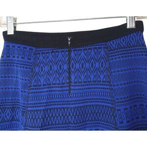 skater skirt, geometric pattern, blue skirt, black and blue, polyester blend, size 7 skirt, women's fashion, casual wear, fit and flare, versatile skirt, stylish design, comfortable fit, Gothic, Rockabilly, Preppy, Peasant, Sequin Hearts,
