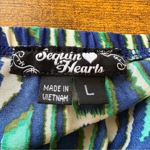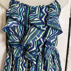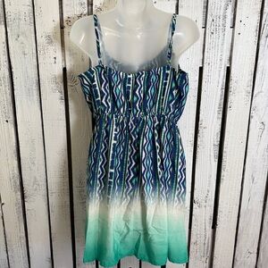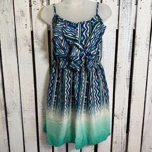 Sequin Hearts Ombre Aztec Print Ruffle Dress Size Large Sleeveless Boho Whimsy Whimsical Adjustable Straps Above Knee Lightweight