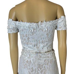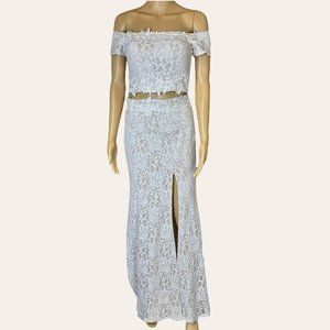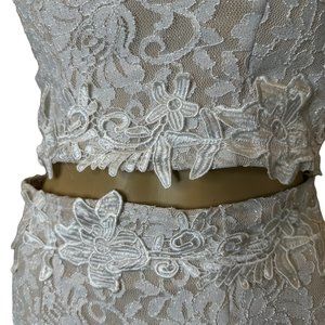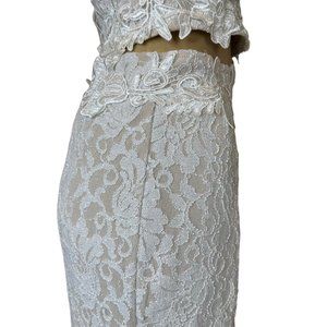 Sequin Hearts SZ XS Off White Two Piece Glitter Lace Gown Dress Lined Embroidery