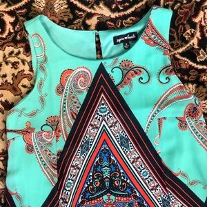 Sequin Hearts Small Turquoise Orange Paisley sleeveless dress