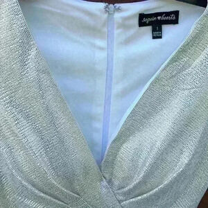Beautiful NWT sparkly gold dress. V-neck with padded bra inserts. Full back zipper for easy step-in. Long sleeves for elegant dressy look. Material is lightweight with some stretch. Measures about 32” in total length and about 30” across the chest. Perfect for Homecoming!!