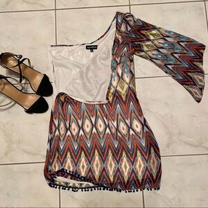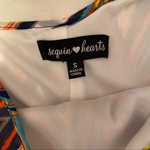 Sequin Hearts one shoulder sleeves, size S, one 3/4 long sleeves