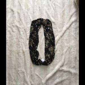 Very sparkly black and gold infinity scarf purchased from Von Mauer at full price. Never worn!!! Bought it for a black and gold gala, but never attended. Found it in my closet, looking for a home. Would be great to dress up any black outfit.
