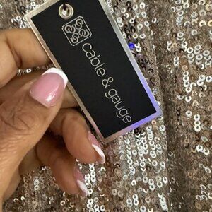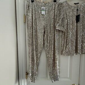 NWT - Size LARGE. Sparkly Champagne Color Sequin Embellished Set - joggers have tapered leg.